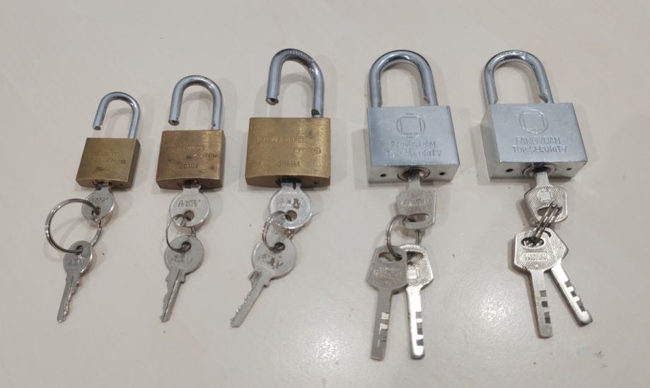 Prodajem rabljene lokote za zaštitu bicikla, za zaključavanje objekata, ograda itd.. dostupne u nekoliko veličina i boja (mjedeni i srebrni). Svaki lokot dolazi s pripadajućim ključevima i u dobrom je stanju za korištenje. Idealni su za osiguravanje bicikla od krađe i pružaju pouzdanu zaštitu vaše biciklističke opreme, objekata i stvari.