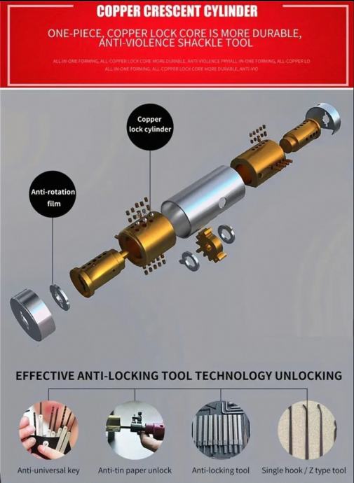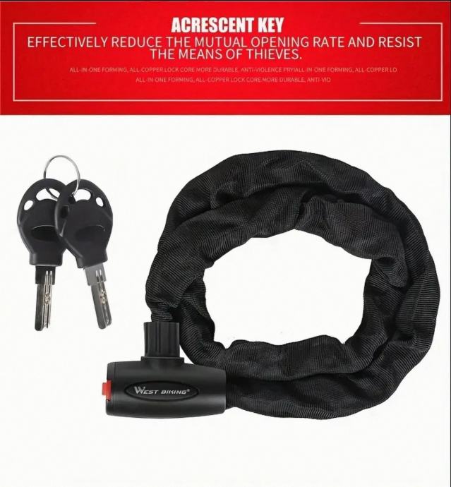 Kaljeni čelični legirani materijal = deblji, čvršći, zaštićeni lanac, sigurna mehanička kontrola brave. 95cm.