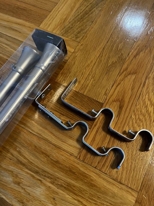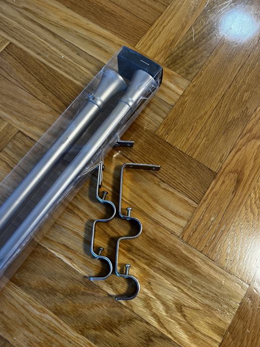 Prodajem duple aluminijske nosače za zavjese dužine 2 metra. Uz šipke dajem i 2 nosača (vidi sliku).