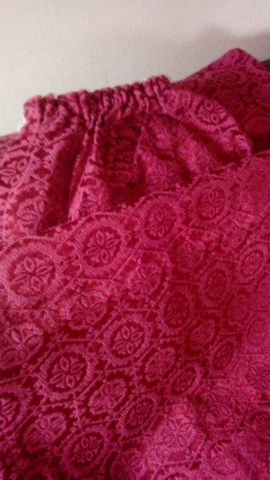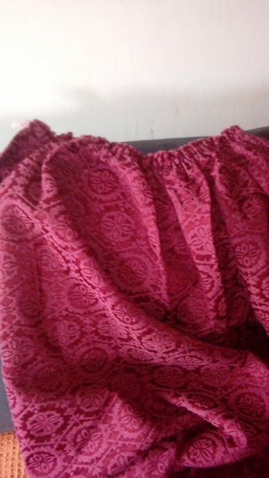 Na gornjem kraju je našivena traka, a donji porub je širine 14cm.