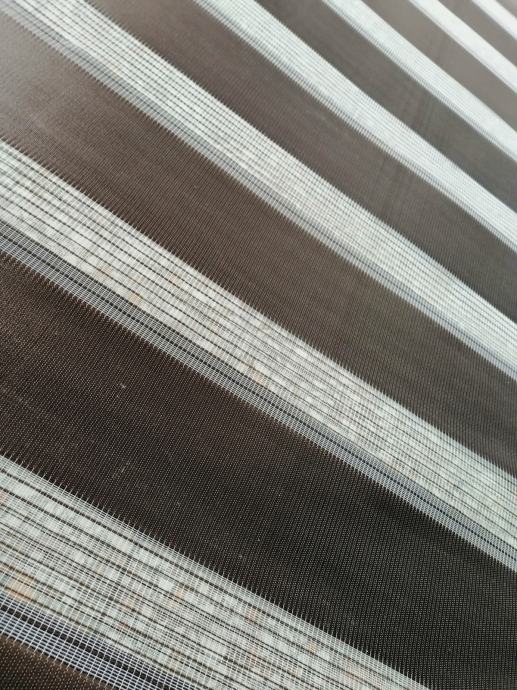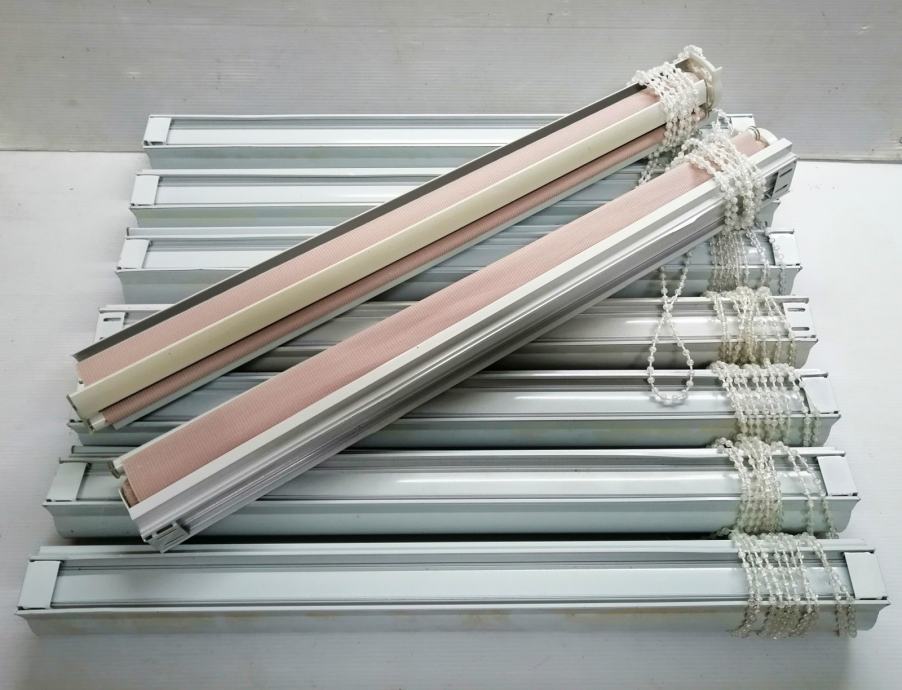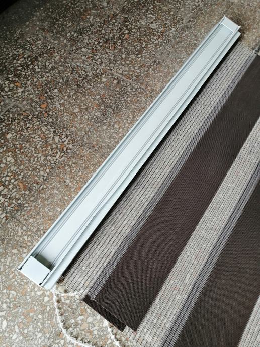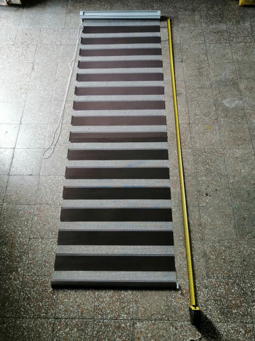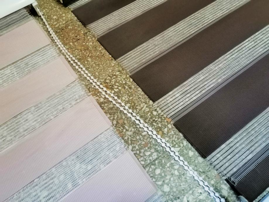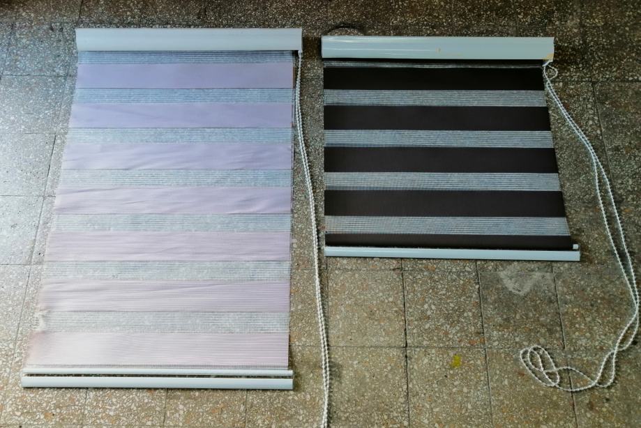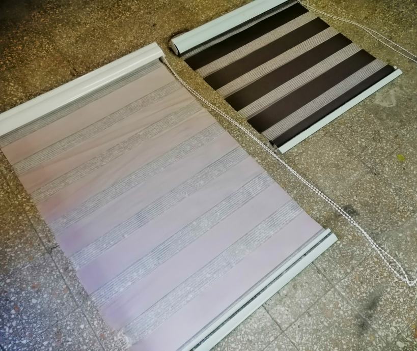 Dvostruka, duo easyfix dekorativna rolo zavjesa (zebra) 9kom u dvije boje (7kom antracit i 2kom roze), materijal poliesterska vlakna sa bočnim vučnim zupčanikom (ovisno kako se namota može biti na vodoravne crte ili jednobojna) širine 70cm x 220cm maksimalne dužine, jednostavno za montažu. Na prodaju u kompletu !