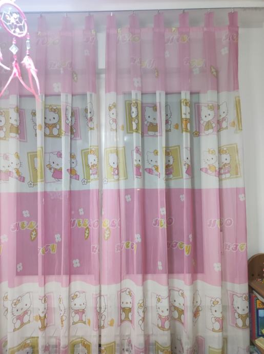 Hello Kitty dječje zavjese 75x245, 2 kom., s omčama za vješanje na okruglu karnišu.