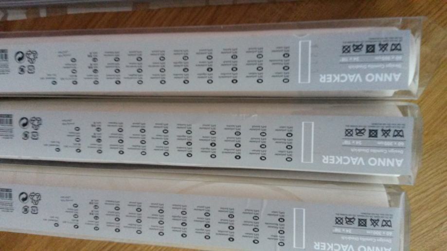 Prodajem IKEA Anno Vacker trakaste zavjese bijele boje sa uzorkom kao na slici, nekorištene, 4 kom, dimenzije 60*300 cm. Prodajem i dva nosača za zavjese. Cijena zavjesa 70 kn, nosači 25 kn.