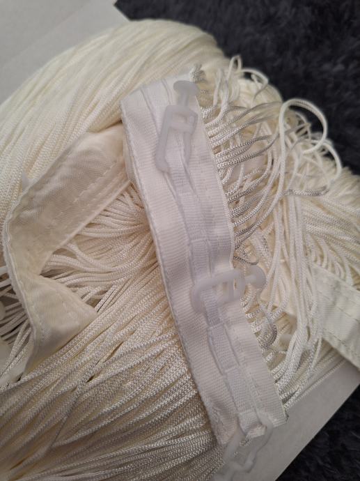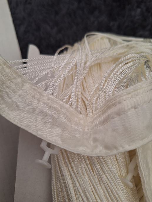 Nove, ukupna širina 370cm ušivena traka za kvačice (ostavljam i kvačice). Prodajem u kompletu 2 kom 140×240 i 1 kom 90x240, sami možete skrati duljinu prema potrebi. Boja sjajni krem