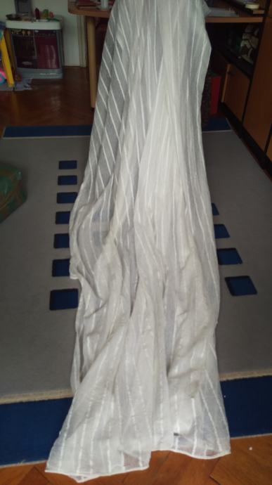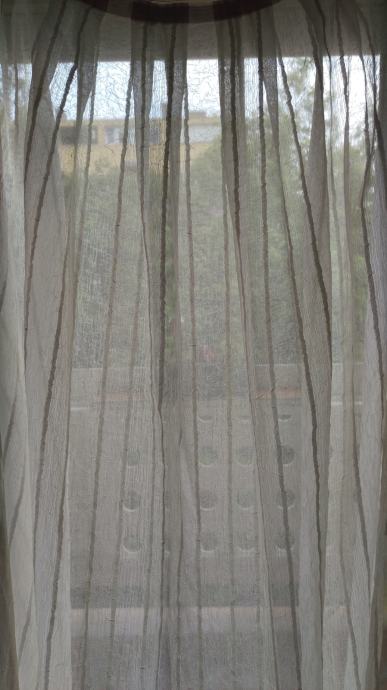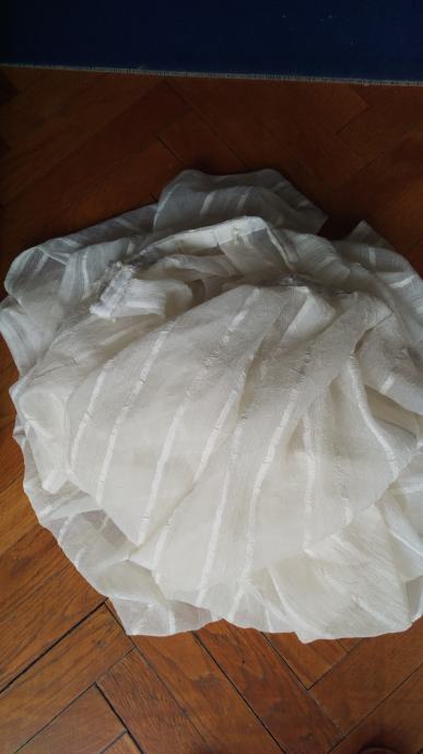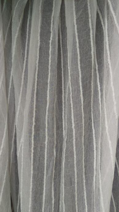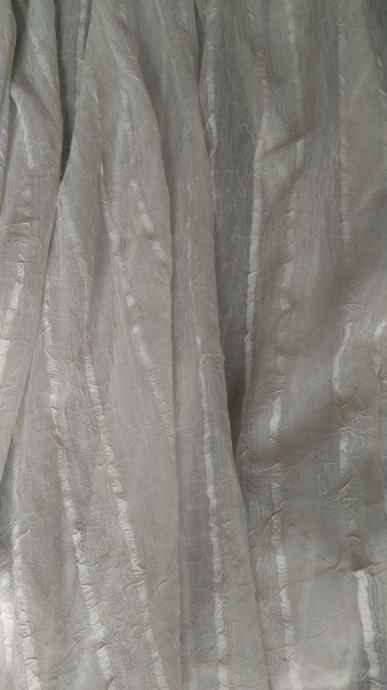 Prodajem jednu novu zavjesu već konfekcioniranu sa ušivenom trakom i olovom na dnu, 100 x 250 cm. Materijal je bež zgužvana, prugasta suvela, stvarno lijepa. Uz to je i vrlo praktična, jer se ne mora peglati.