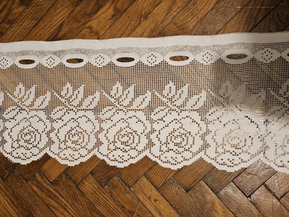Kratke bijele čipkaste zavjese s motivom ruže