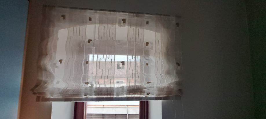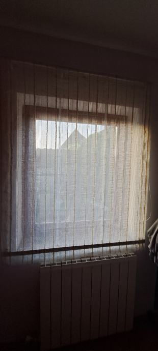 Tri kompleta paketo zavjesa 2 karniše duge 1,20 zavjese su dugačke 1,50 ,1zavjesa je manja 1,45 a karniša duga 1,10, Može i