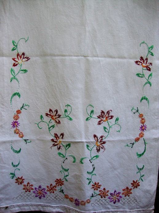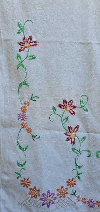 Ručni rad vezeno dimenzije 60cm x 116 cm nema oštećenja vrlo dekorativno rad na starom platnu pamuk