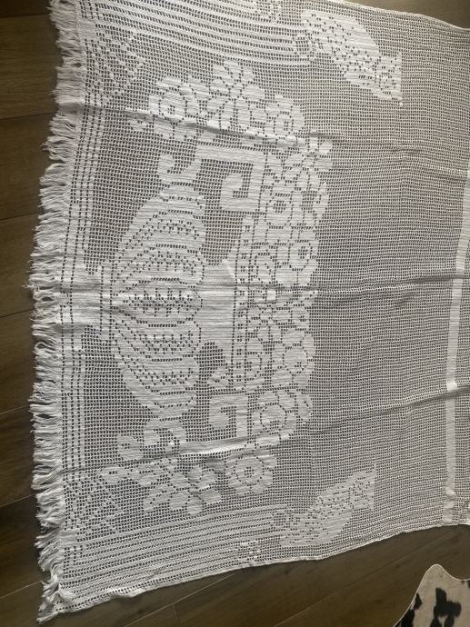 Hekljana zavjesa košara 1,5 širine i dužine.Ručni rad rađen po šemi.