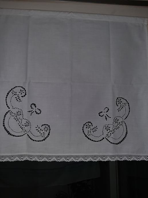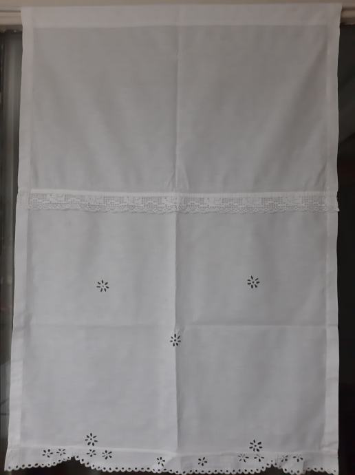 Posebna prilika za kupnju ljubiteljicama ručnih radova. Nove zavjese nekorištene precizan ručni rad i fino platno moze se postaviti na