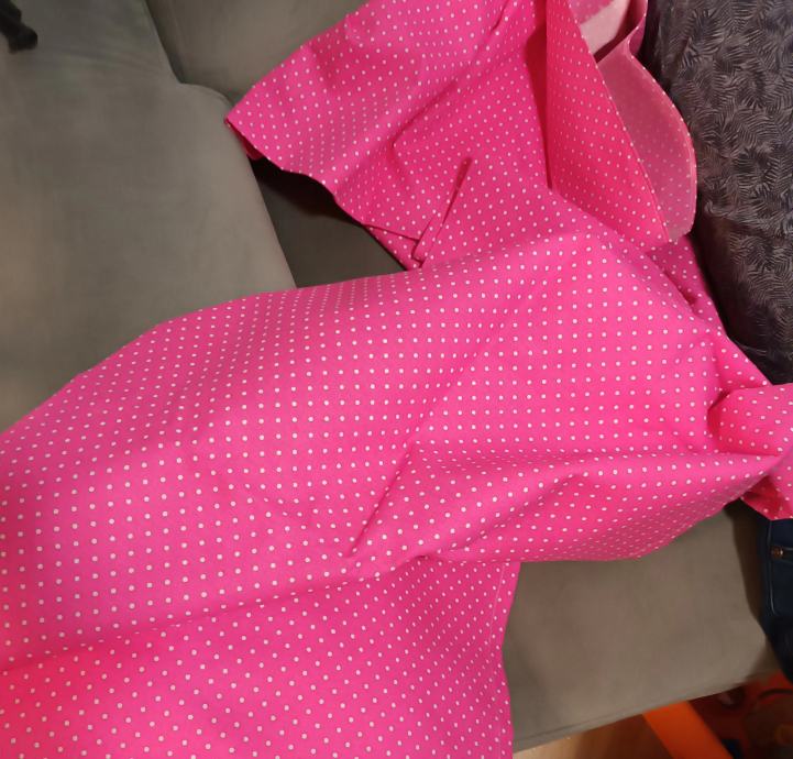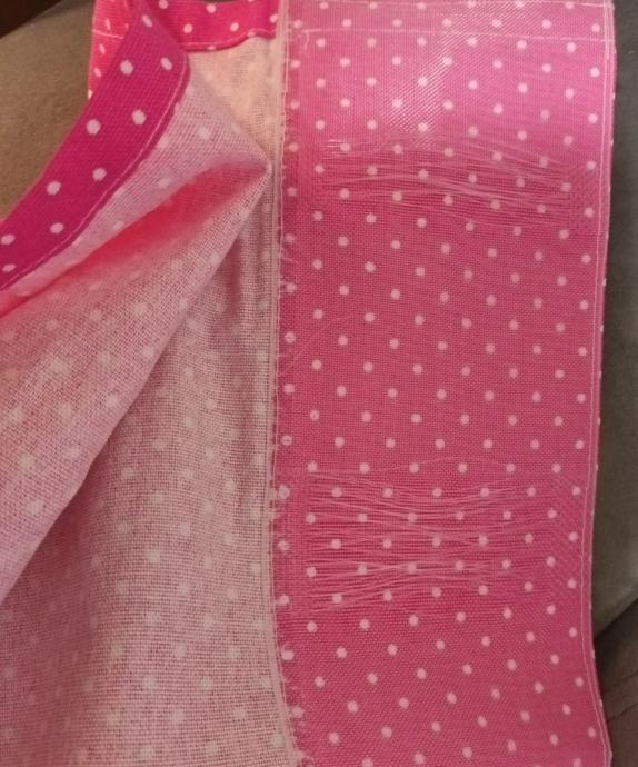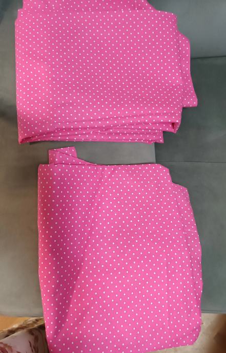 Dupla zavjesa dekor, ciklama roza boja na sitne točkice. Nova nikada korištena. Kupili za sobu za djevojcicu, ali dok se soba napravila, zavjesa joj se prestala svidati! Dimenzije po komadu 100 x cca 260. Doatupno 2 komada. Ima ugrađenu "krena" traku. Mogućnost kupnje i bijele prozirne zavjese za središnji dio.