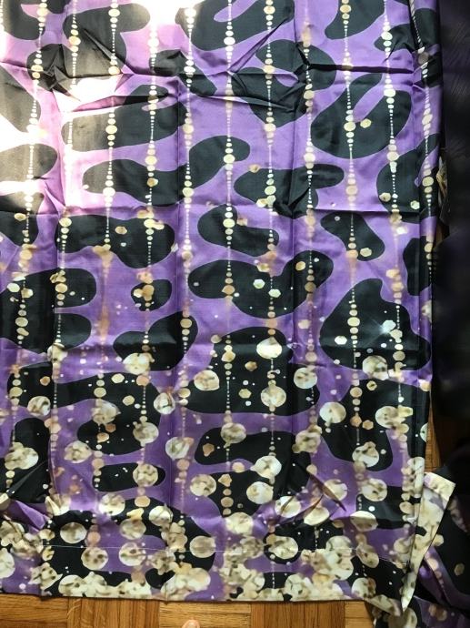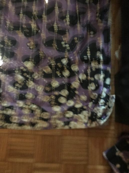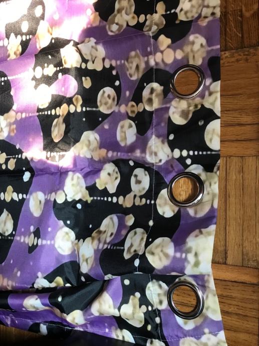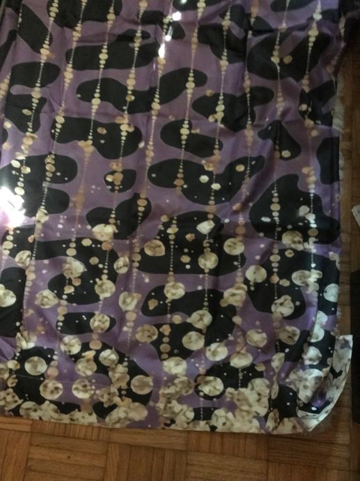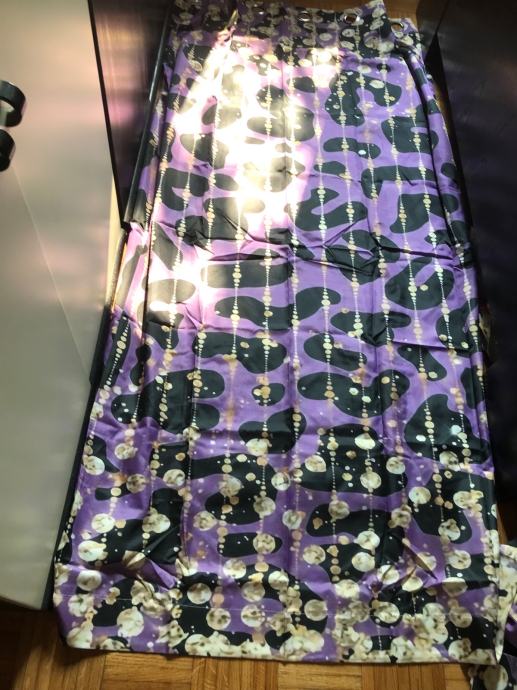 Nove poluprozirne zavjese, ljubičaste sa leopard uzorkom i žuto/ zlatnim detaljima - koji nisu toliko zlatni kao na foto - jedino kada svjetlost udara u njih