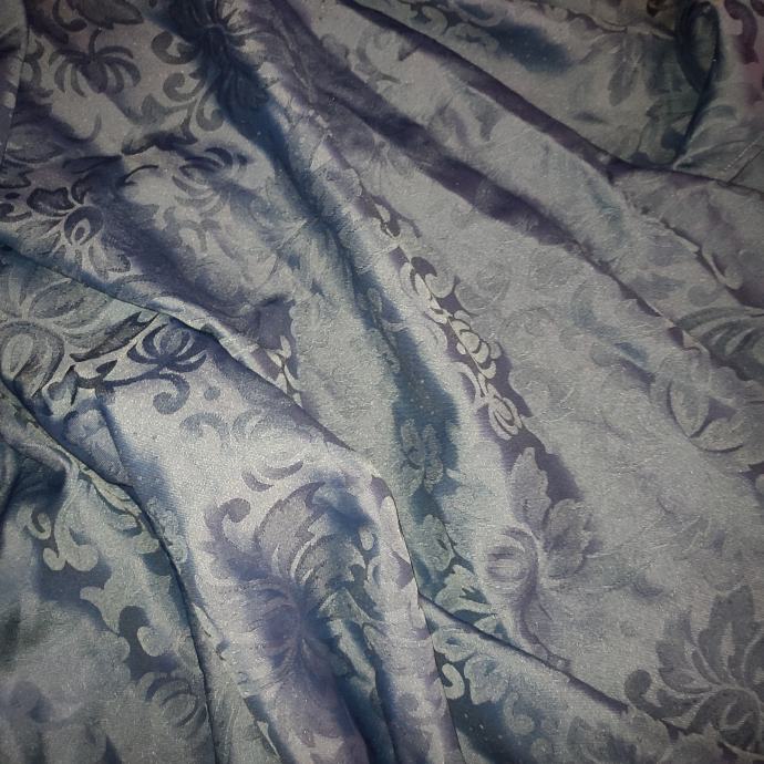 Predivne dekor zavjese za zamračivanje i ukras, saten, indigo plavi ili kraljevski plavo s cvjetnim uzorkom, visina 210 širina nabranog je 280, znači za zamračenje prozora širine do 280, a i za manji prozor ukoliko se gušće nabere dekor.