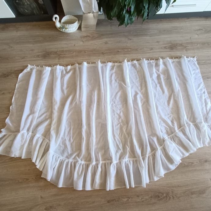 Zavjese sa trakom, širina 255cm,visina na sredini 115 cm,na kraju 90cm