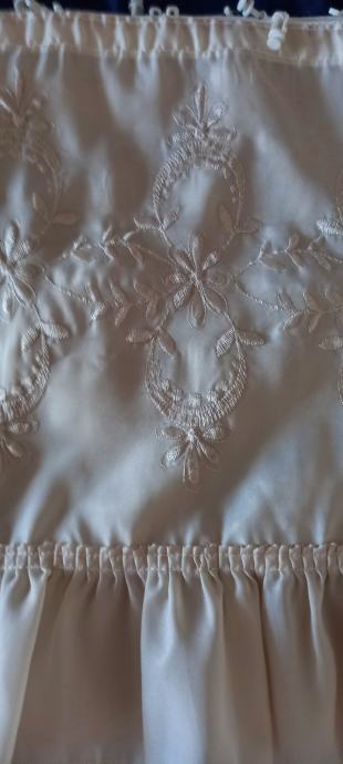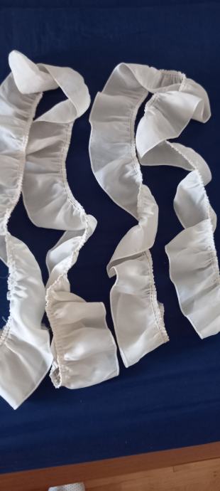 Zavjese sa unutarnje strane idu polukružno sa volanom na rubnom dijelu, ima i trake za vezanje.