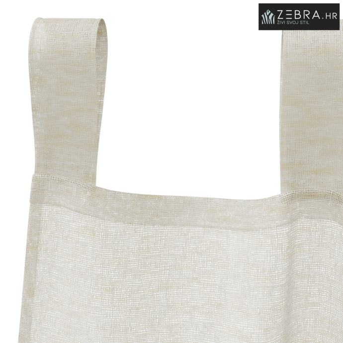 Premium poliester: Ova zavjesa je od visokokvalitetnog poliestera, što joj daje izdržljivost i lijep izgled. Prozirnost materijala omogućava lagano filtriranje svjetlosti u prostoru, pružajući prirodan sjaj dok se privatnost održava.