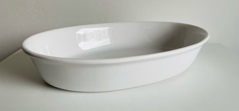 2 posude za pečenje – 1 velika bijela, 1 mala plava