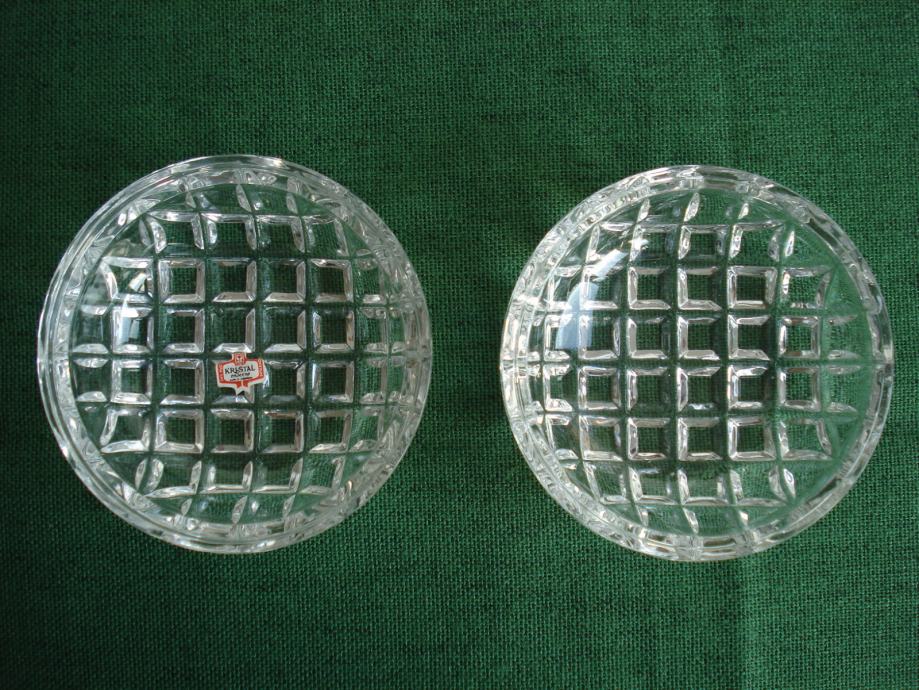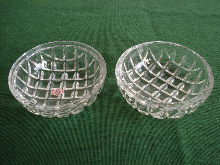 Dvije nove prekrasne kristalne zdjelice za različite namjene (deserte, bombone, praline, grickalice, salate, voće, sladoled ili slično), nisu nikad korištene, u izvrsnom stanju, prodajem. Zdjelice se mogu staviti jedna na drugu da budu kao posuda s poklopcem ili zasebno.