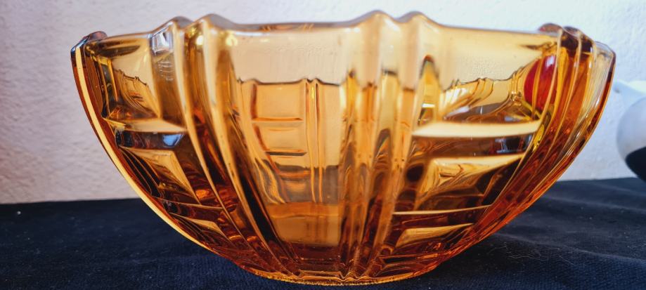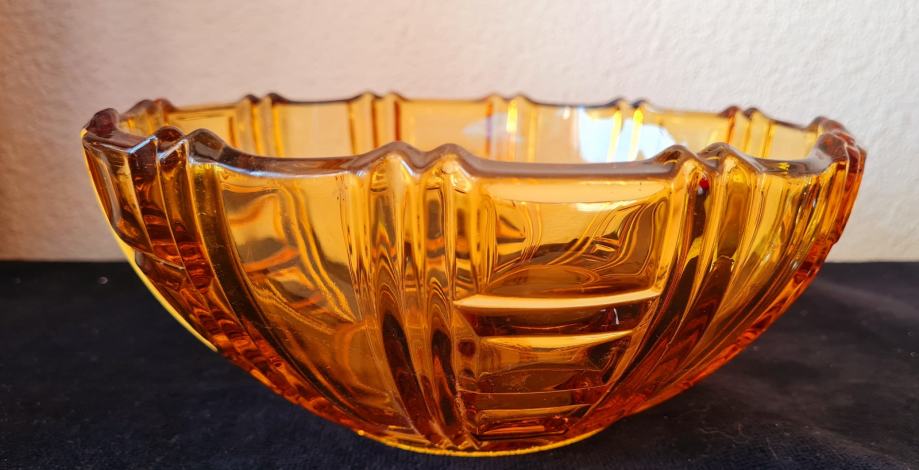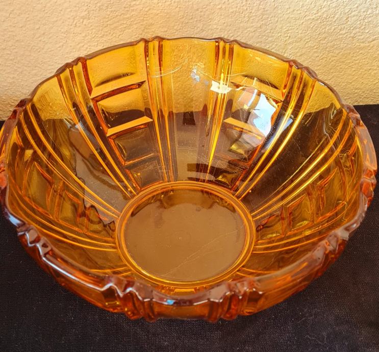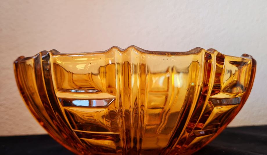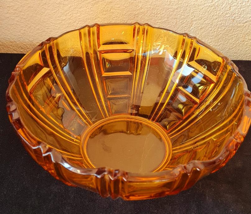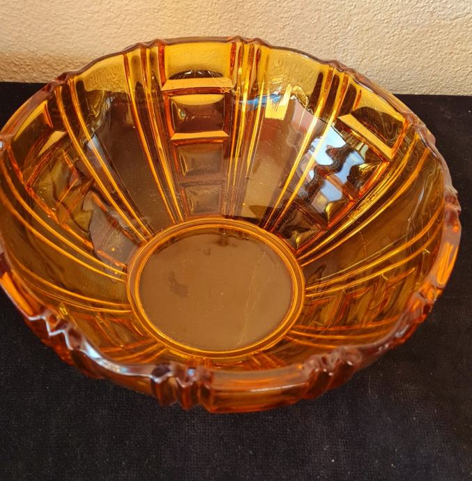 Zdjela, art Deco. Amber staklo. U savršenom stanju.