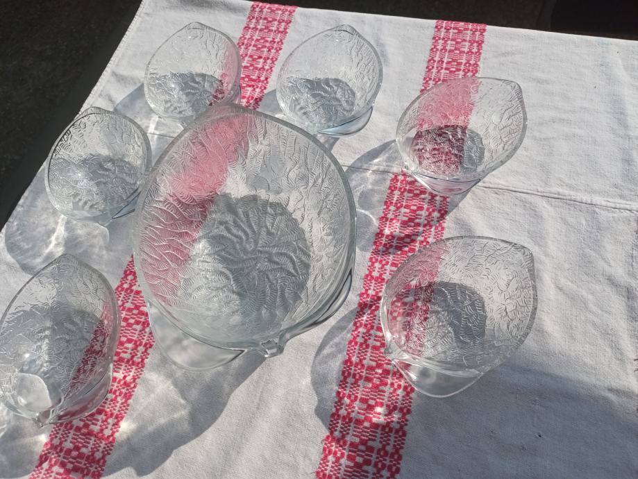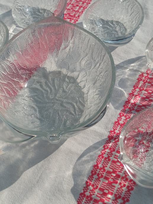 Desertne zdjelice i velika zdjela od lijevanog stakla