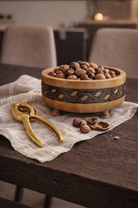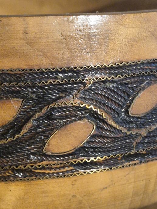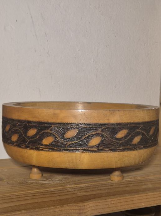Drvena zdjela s metalnim zlatnim obrubima oko ornamenata. Ručni rad- unikat. Jako rijedak primjerak.