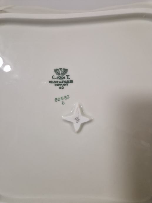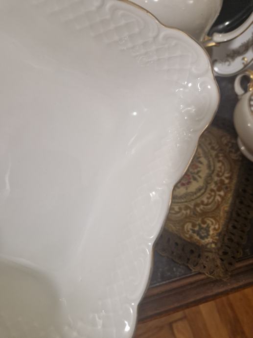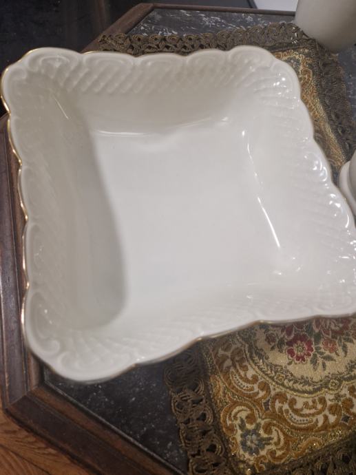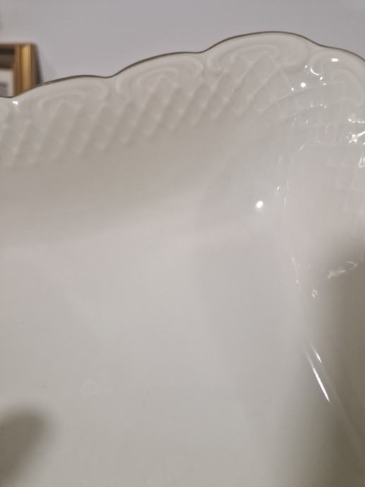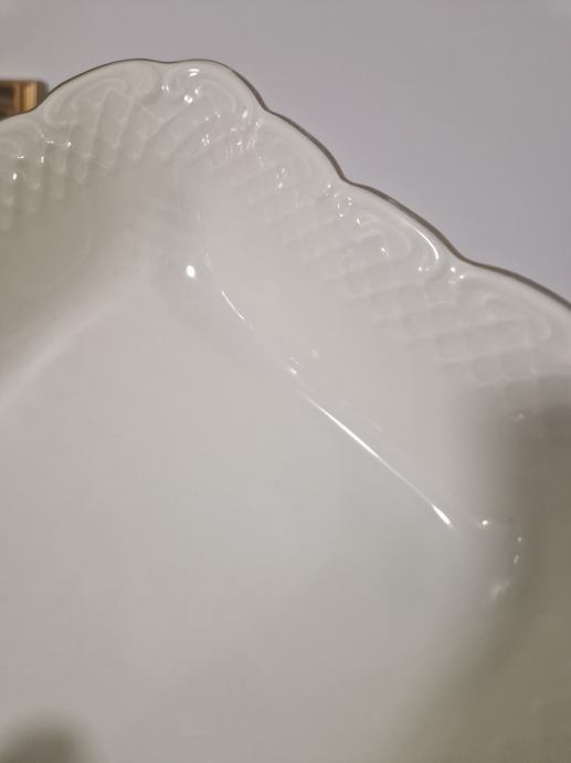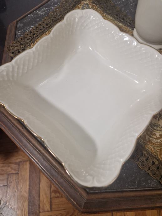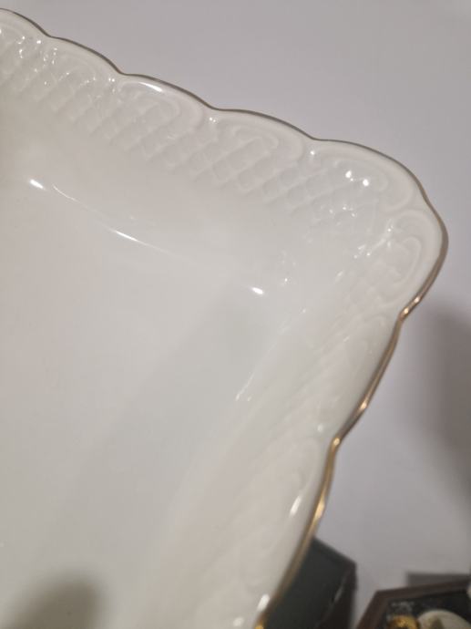 Perfektno stanje, neokrhnuta čak je i pozlata u okej stanju :) brendirani njemački porculan, odlična reljefna rubna izrada. Zdjela je iz perioda 1920-ih. Dimenzije su 20 x 20 cm.