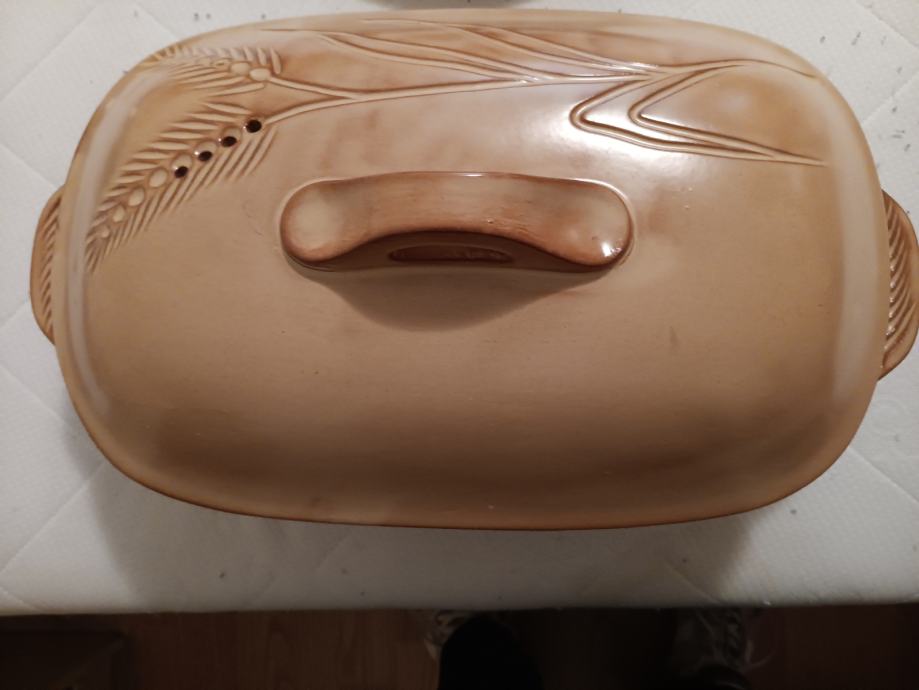 Glinena posuda za pečenje s poklopcem, vrlo efektna, za serviranje, nikad korištena, u besprijekornom stanju, idealna za poklon.