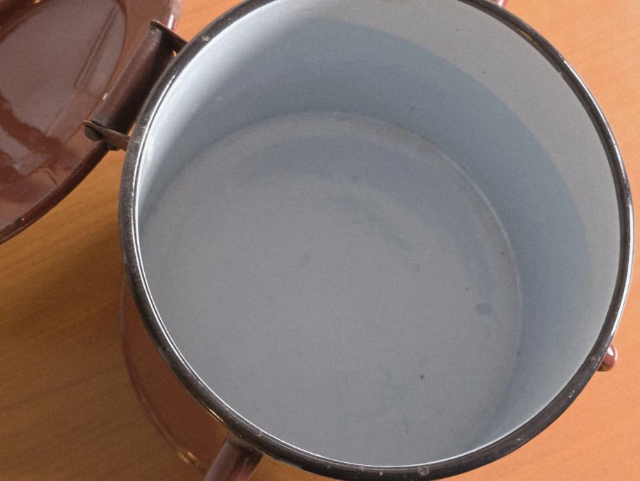 Emajlirane posude, veća namijenjena za držanje masti i sl., manja za tekućinu.
