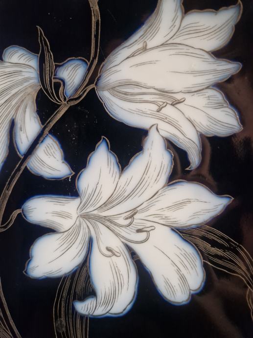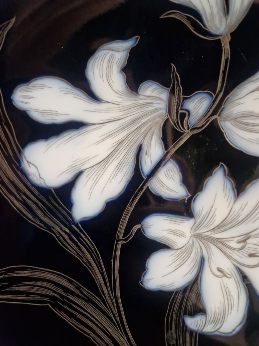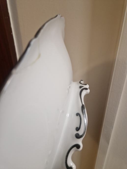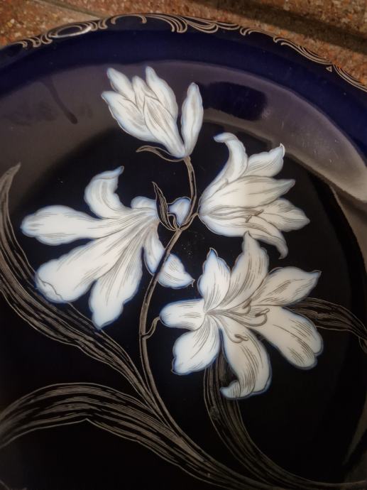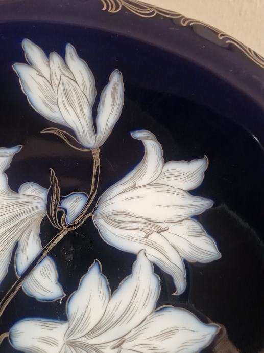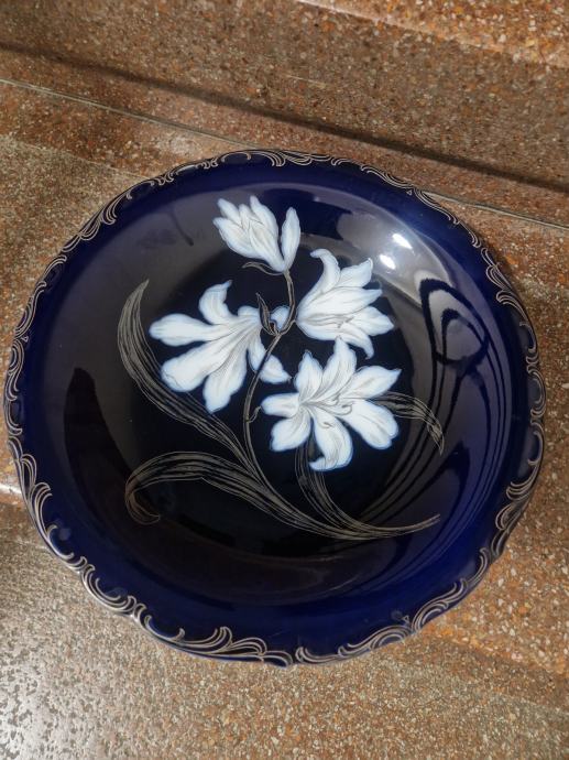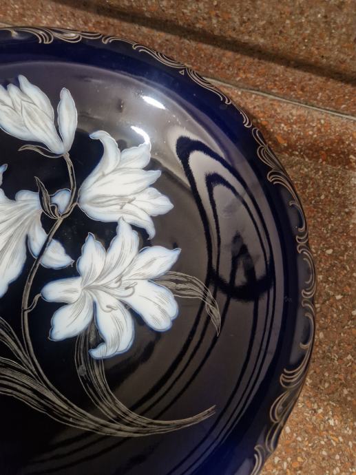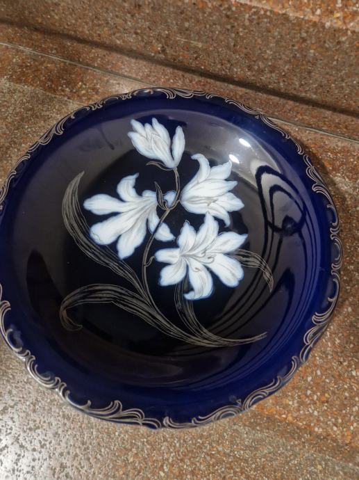 Ručno oslikana i prekrasna, s obzirom da je zdjela nastala prije Drugog svjetskog rata, jedan rub je bio okrhnut i saniran ( poslikano) s prednje strane se uopće ne vidi ali se vidi stražnje , kad se okrene zdjela . U biti kad stoji na stolu ništa se ne vidi osim ljepote :)