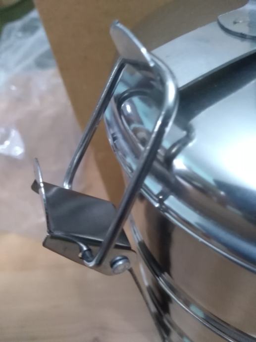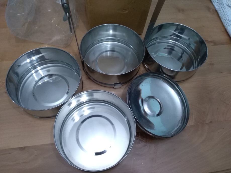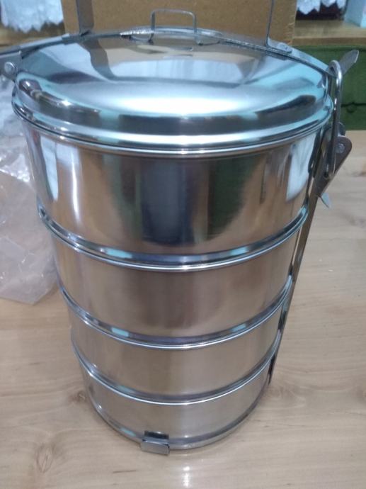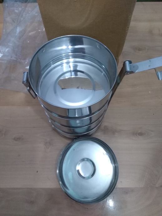 Prodam jake restoranske posude za nosenje hrane 4 kom. u kompletu, svaka je 1.3 litara, ukupno 5,2 litara stane.Debeli inox materijal Prodam garnituru za 392 kn. Moguca dostava postom.