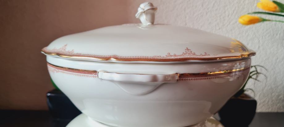 Jušnik, ili zdjela za meso. Rađena u periodu od 1924 -1946- e godine. Seltmann weiden, Germany. Tako decentna, sa pozlatom koja je u savršenom stanju. Ako je idem opisati, ne znam postoje li riječi. Boja slonovače