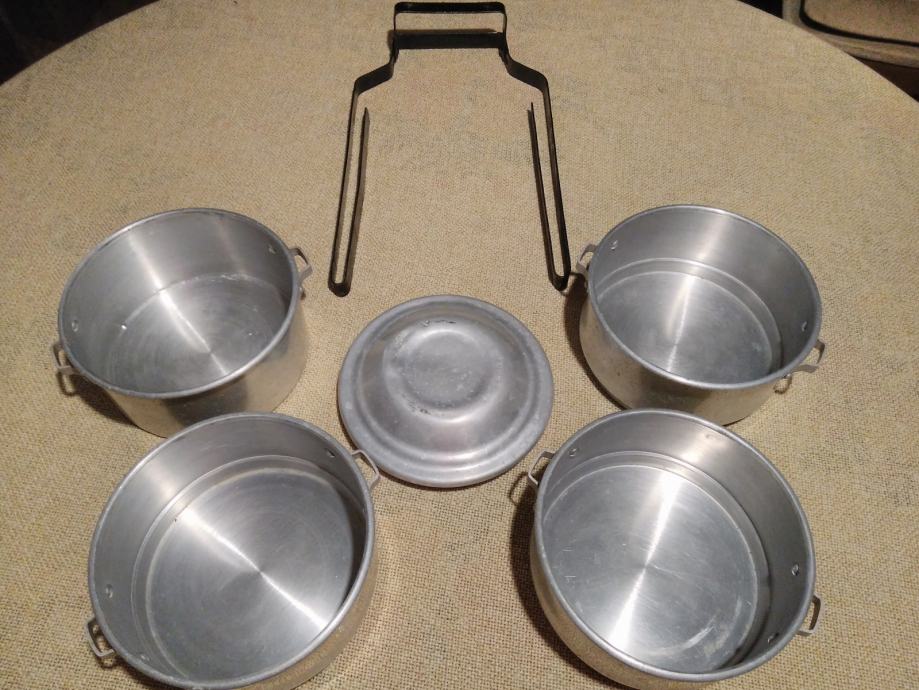 Prodajem komplet aluminijskih posuda za nošenje jela / kuhane hrane iz 50-ih god. 20.st.