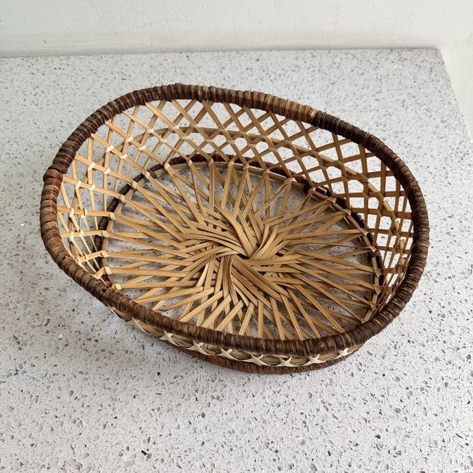 Pletena ovalna košarica dimenzije 16x21 cm, visine 7 cm.