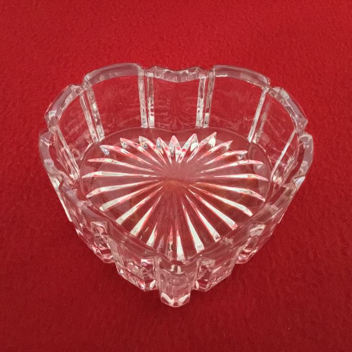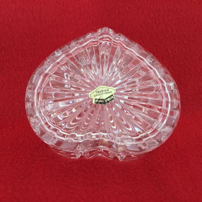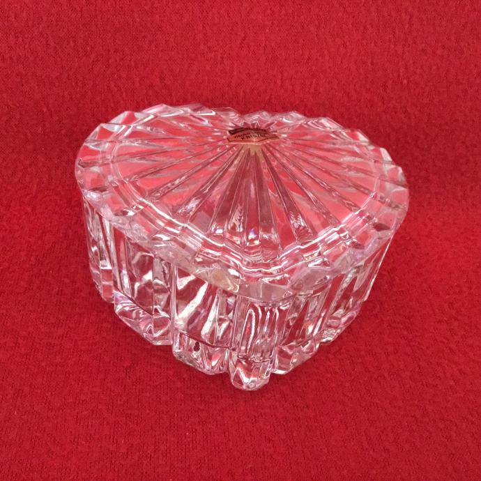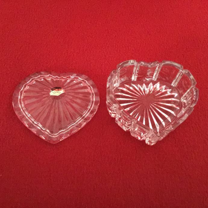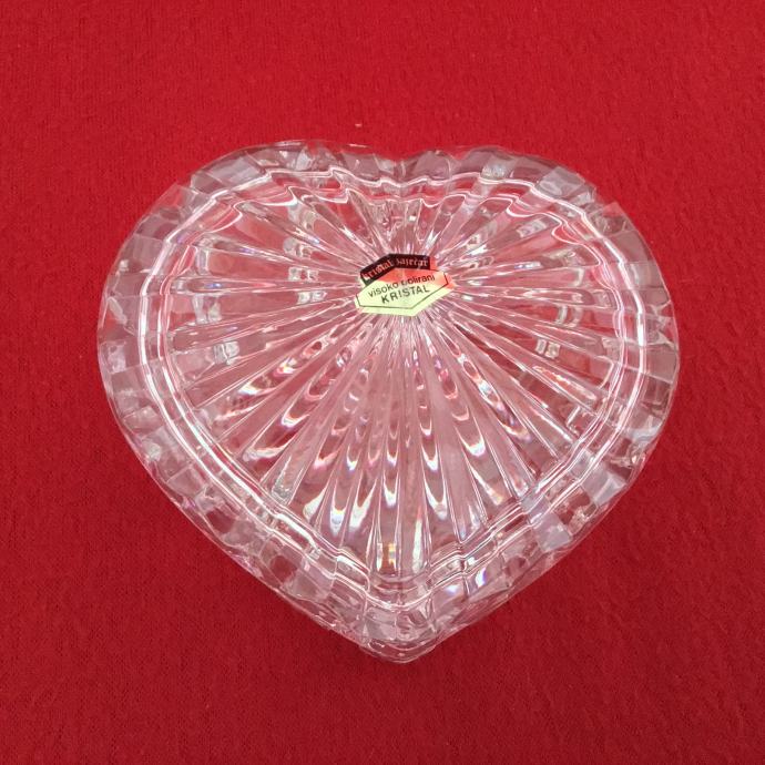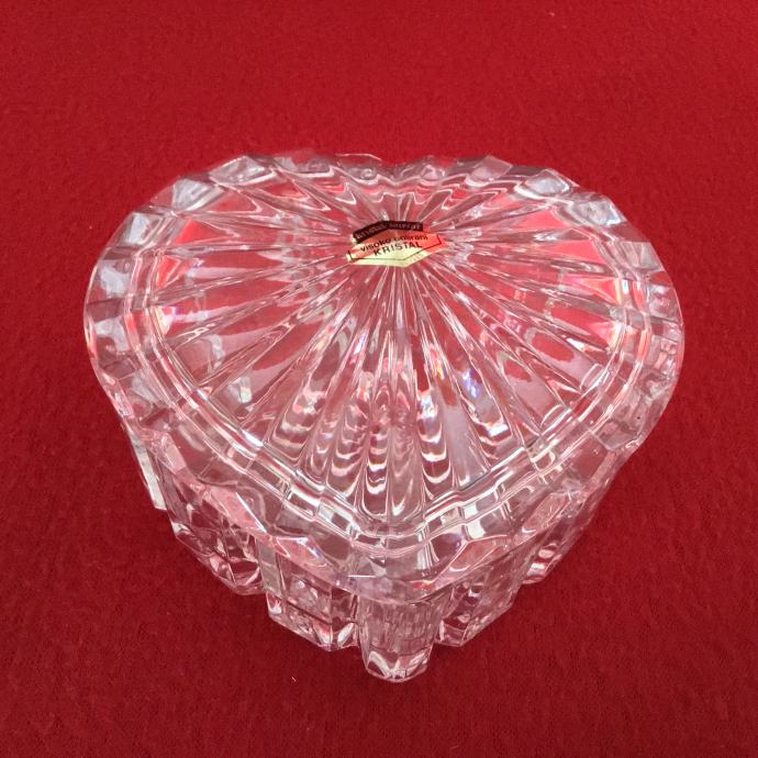 Kristalna kutija s poklopcem u obliku srca, visoko polirani kristal, Kristal Zaječar.