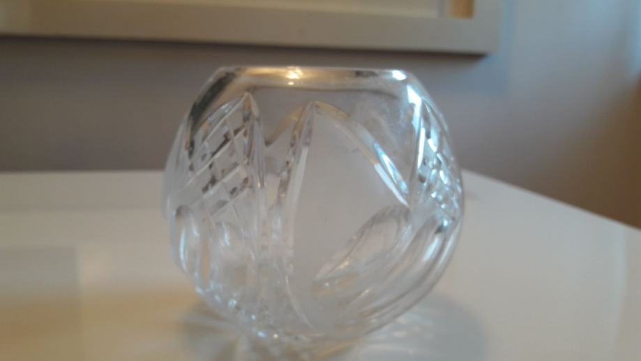 Prodajem kristalnu posudu visine 10cm. Najveći promjer je 11 cm, a promjer otvora je 7 cm.