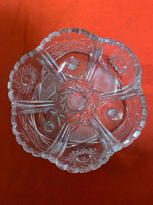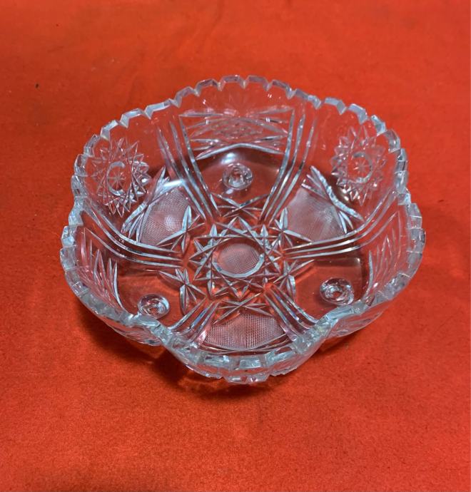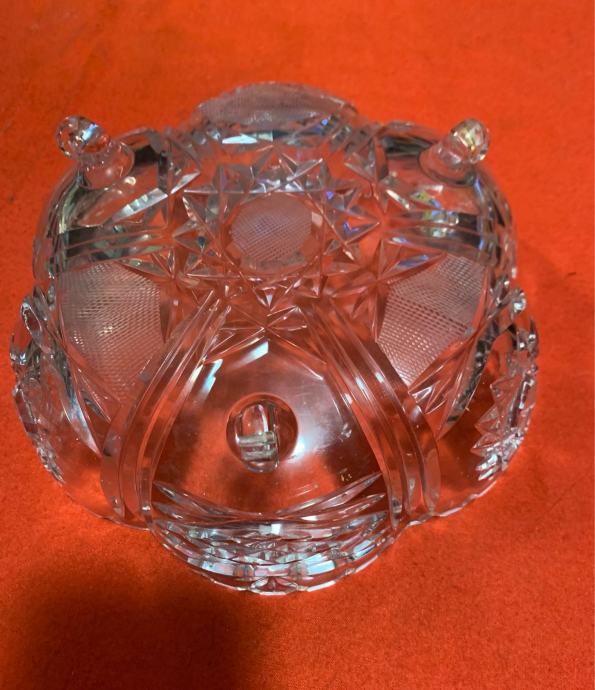 Kristalna zdjela promjera 21 cm, sa tri noguce, visina 10cm, nekoristeno. Stajalo u vitrini