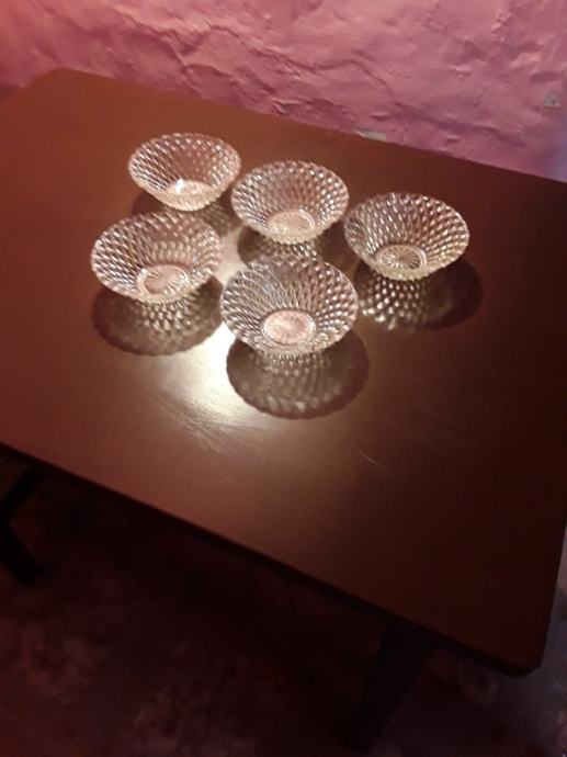 Prodajem5 staklenih zdjelica za pudingi masivnu kristalnu pepeljaru.