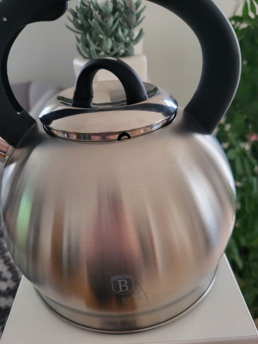 Prodajem novo kuhalo za vodu Berlinger Haus od nehrđajućeg čelika. Radi se o klasičnom čajniku za štednjak, srebrne boje s crnom ručkom i poklopcem.