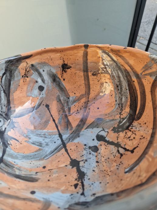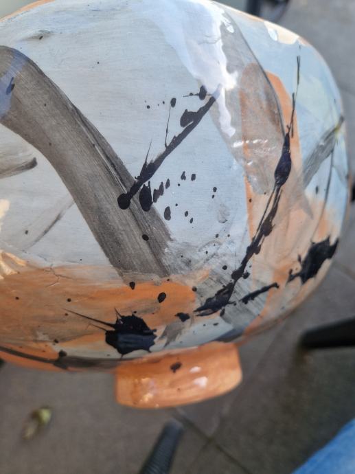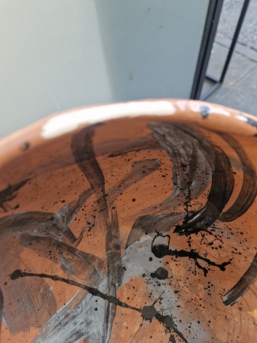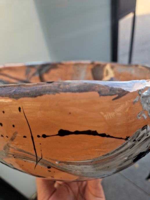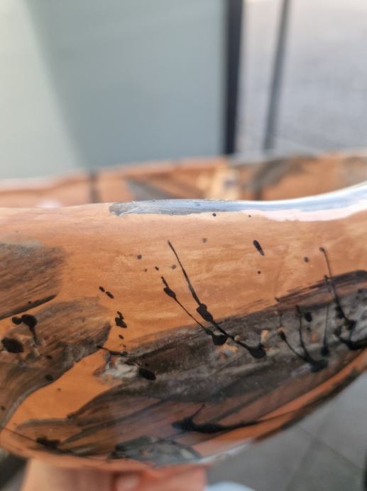 Promjer 26 cm, visina 15 cm, dosta stara, ručni rad iz Likuma, boja je na nekim mjestima popucala ( poslikano) pa je zato ovakva cijena