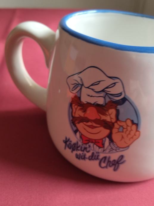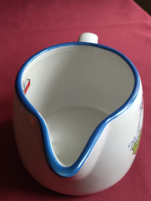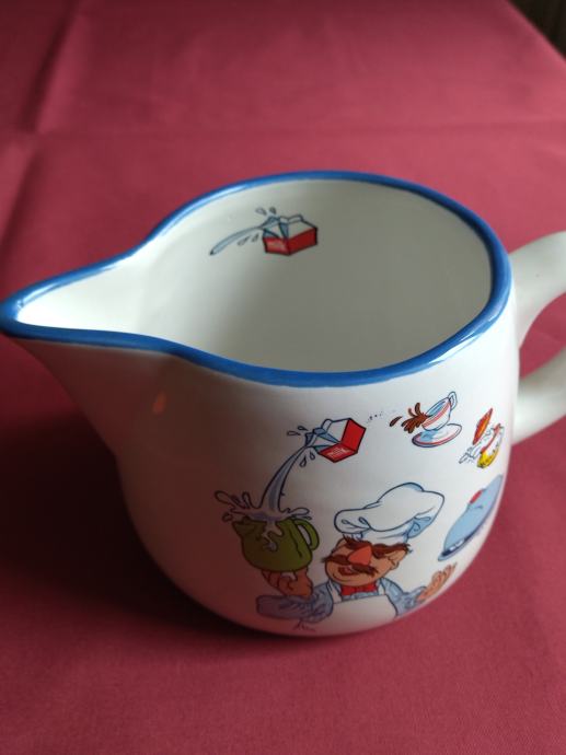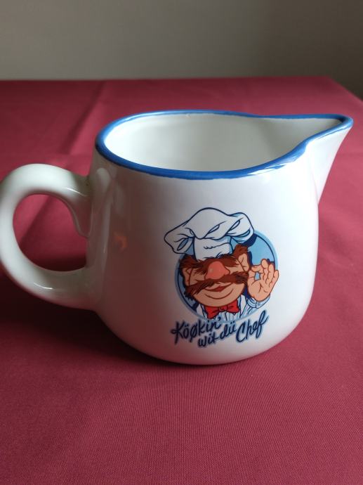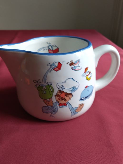 Keramički vrč odlične kvalitete, vrlo lijepo oslikan motivima kuhara. Lijep predmet uporabne ili dekorativne namjene.