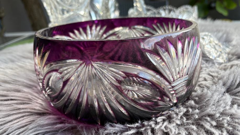 KRISTALNA ZDJELA RUČNO BRUŠENA boja bordo fi 19cm, visina 10cm
