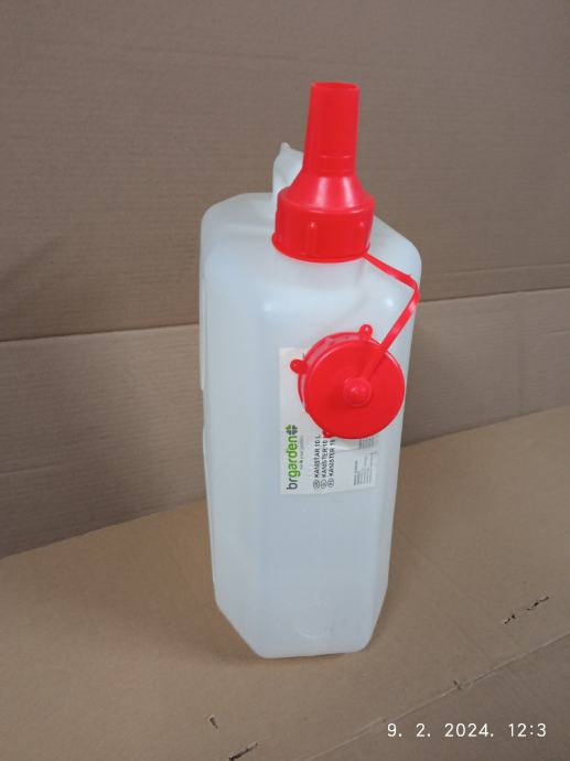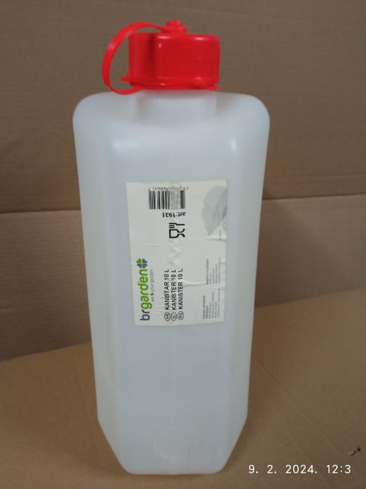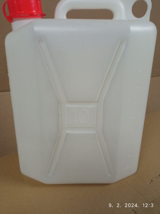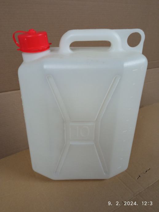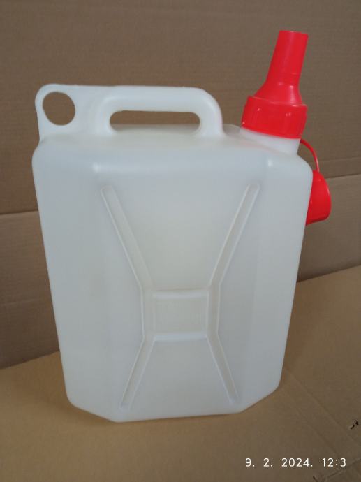 Plastična posuda (karnister)za čuvanje i prenos različitih tekućina.Tri komada.Komad je 4eura ili sva tri za 10eira.Svaka posuda ima svoj lijevak.