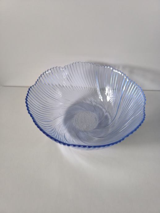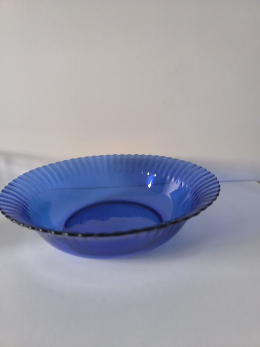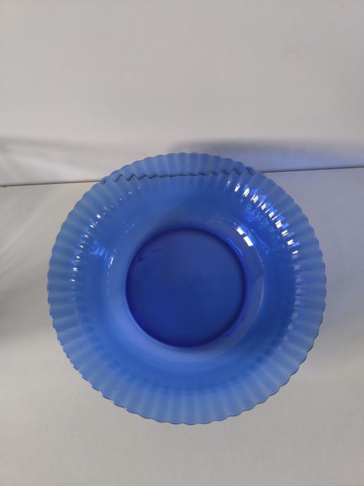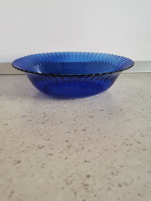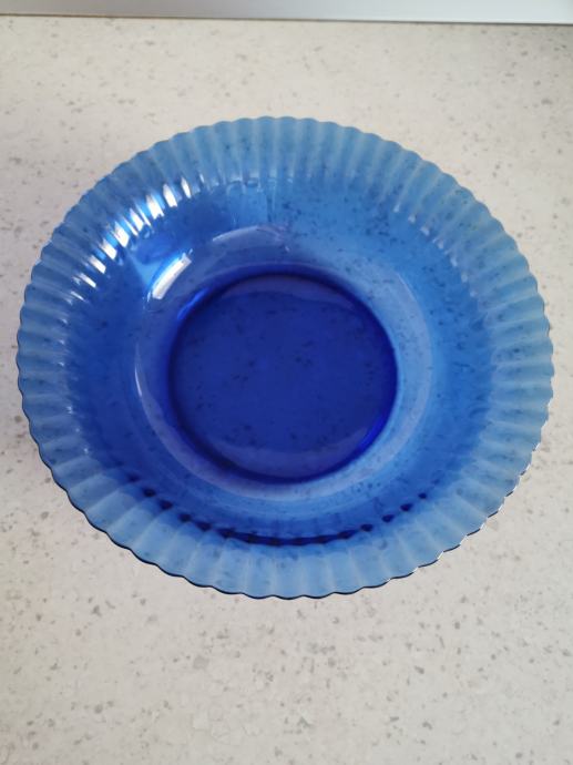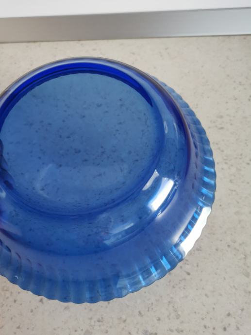 Plava staklena zdjela promjera 24,5 cm i visine 6,5 cm