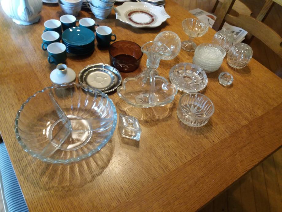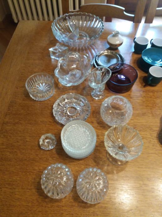 Kristalne ukrasne i praktične sitnice (7 eur), staklena flaša sa tacom i 4 čašice (15 eur).