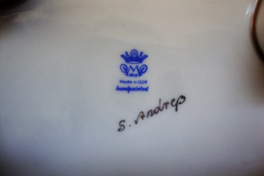 Krasan vrhunski komad porculana ručni rad ,ručno oslikano i potpisano S. Andress što se vidi iza na poleđini porculana gledaj žig