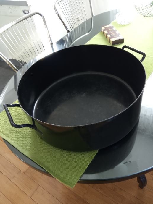 Zdjela za topiti mast i čvarke. Emajlirana promjera 44 cm i visine 15 cm. Samo pozivi 098 318 286 bez poruka. Cca 25 l
