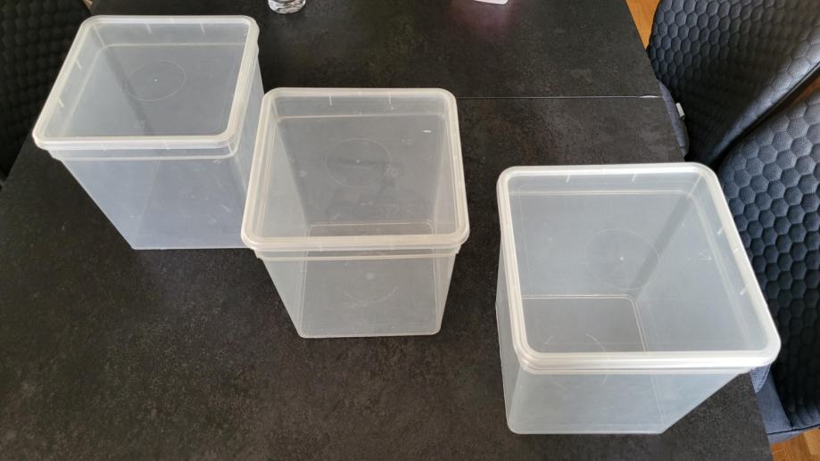 Prodajem 3 plastične posude s poklopcem dim 19x19x19cm.