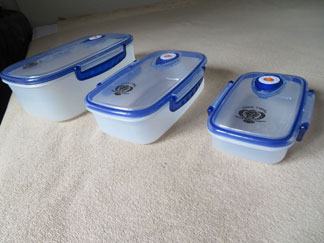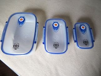 Otporne su na temperature od -25⁰ do 120⁰ C i moguće je pranje u perilicama posuđa. Zapremnina posuda je 2.5 L, 1 L i 0.4 L. Cijena za sve tri je 9 eura.