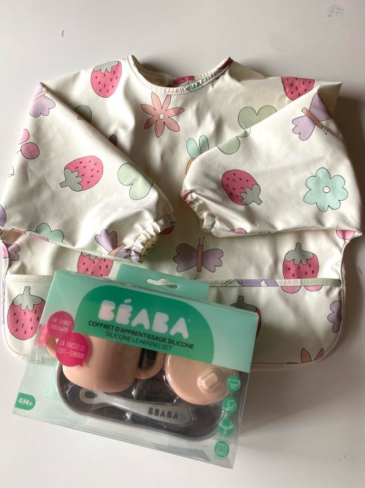 Silikonski set za hranjenje Beaba + Podbradak Coverall Next