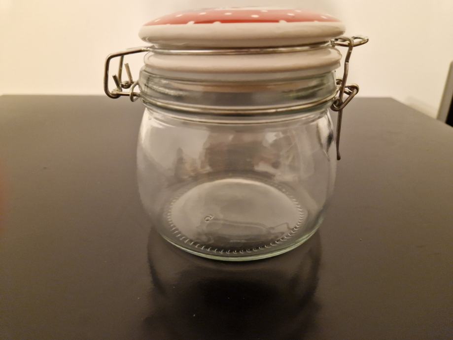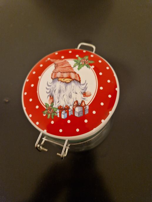 Staklena posuda za kekse sa Božićnim motivom, gnom, korištena jednom.